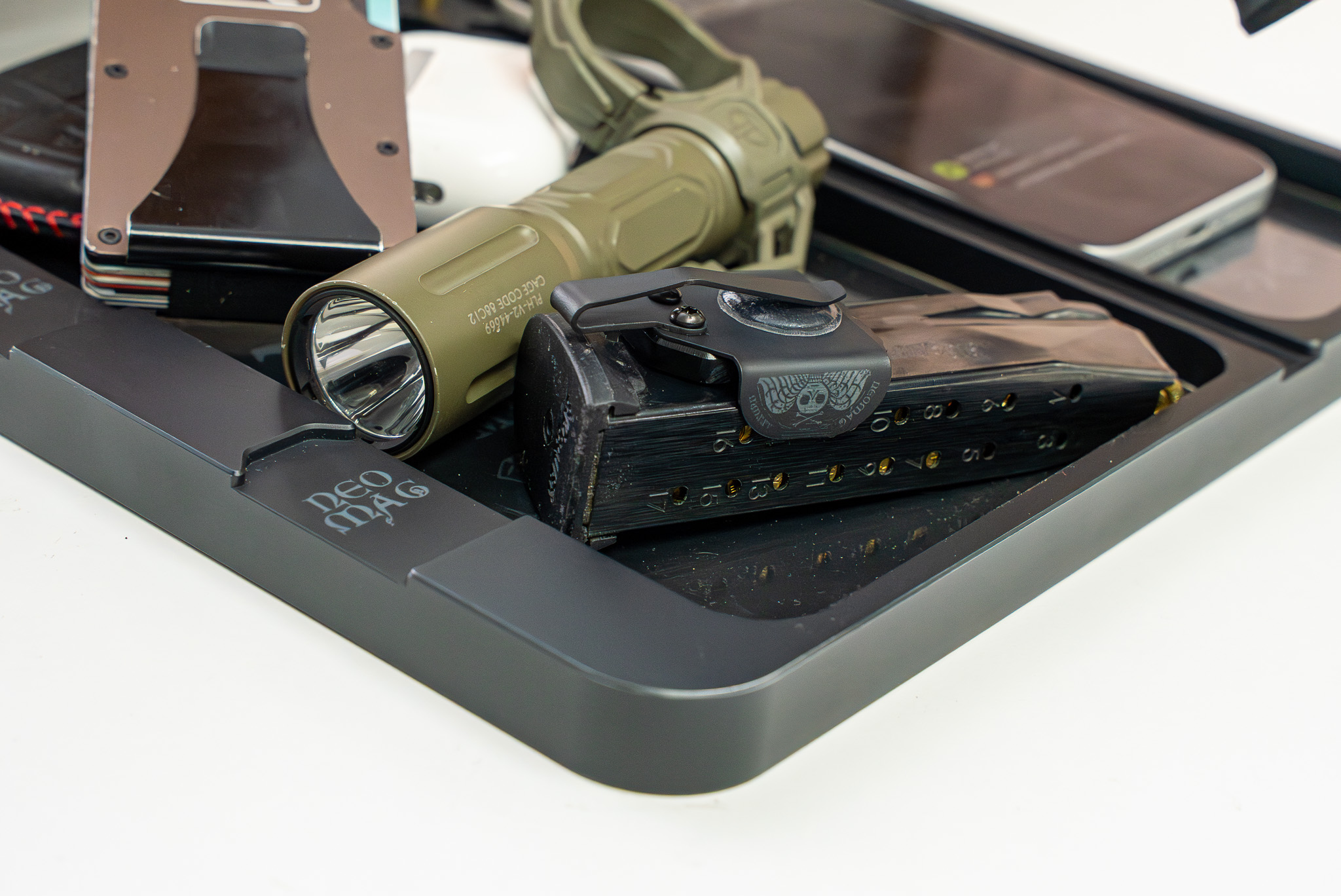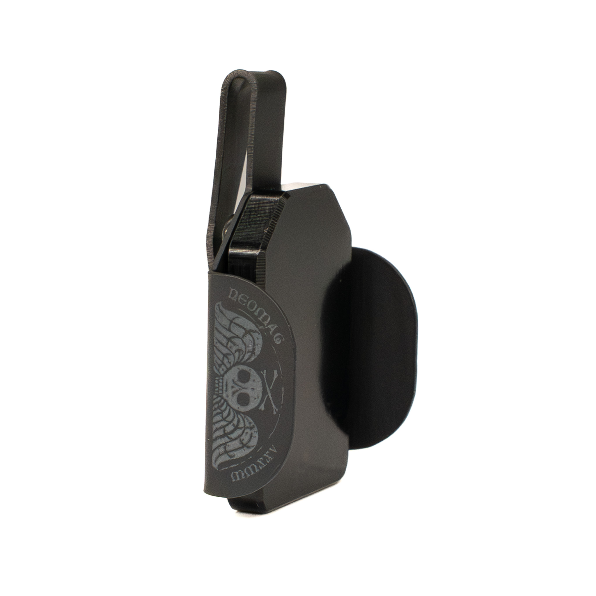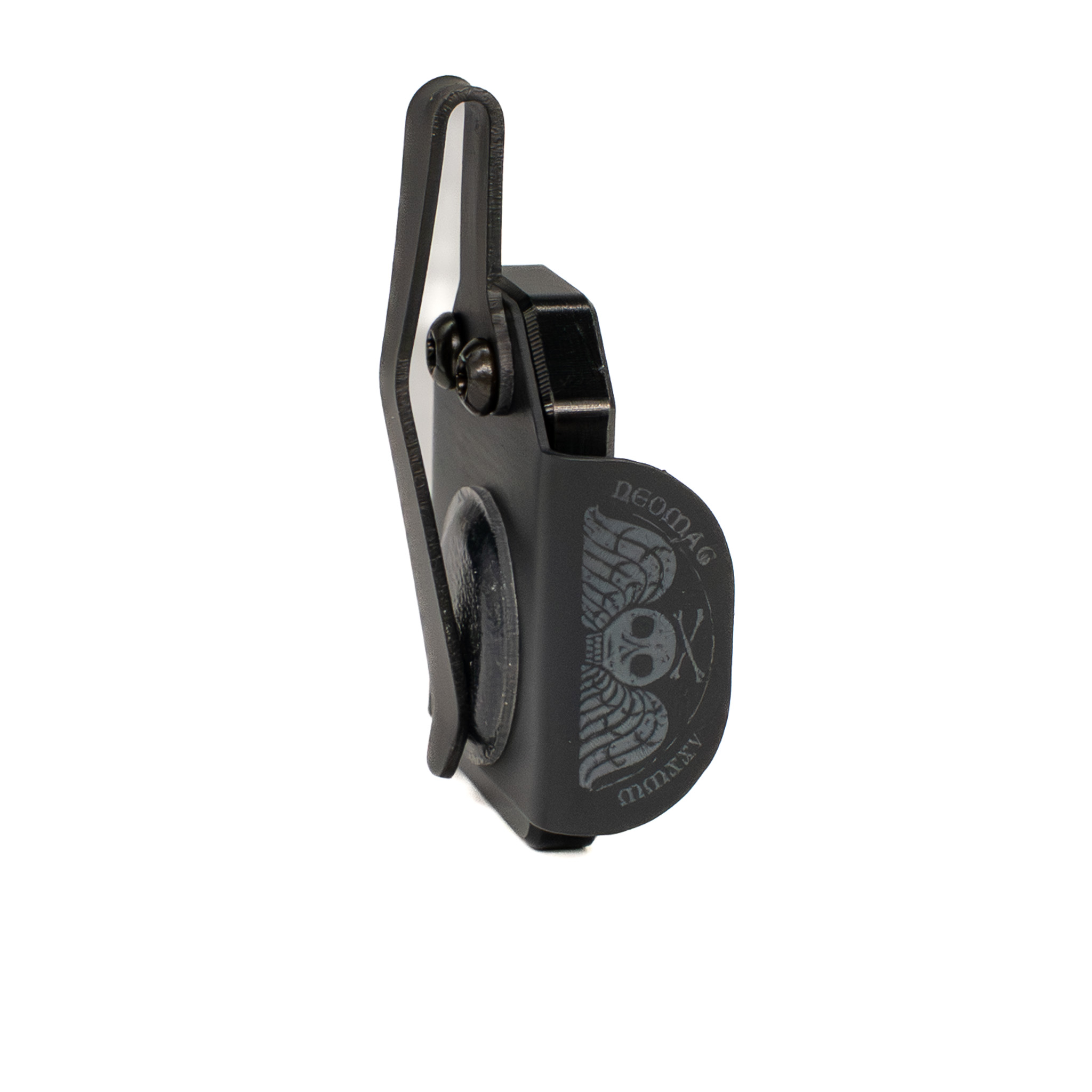 Introducing our first custom-shop NeoMag Gen2 in a limited edition NeoMag Gen 2 – Memento Mori Edition, designed in collaboration with Blown Deadline. This Medium NeoMag is engineered to accept all of your 9mm and .40 S&W magazines — including Glock OEM — and integrates our second-generation retention geometry to ensure smooth seating and reliable release. CNC machined from USA-sourced 6065 aluminum, finished and laser-etched with the Memento Mori artwork, this NeoMag balances tactical performance with contemplative design.