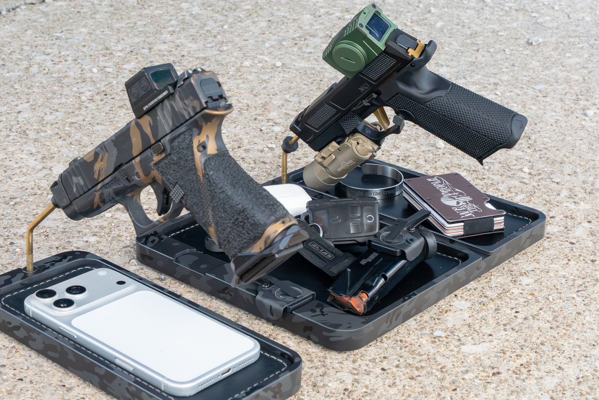 The Premium EDC Dump Tray – Sheen Camo Edition takes everything you love about our flagship tray and elevates it with a truly unique finish. In collaboration with Billy Brown of Make Ready Firearms, this edition features his signature Sheen Camo Cerakote—a refined blend of layered tones that shift subtly in different lighting. It’s understated, distinctive, and built to stand out without shouting.